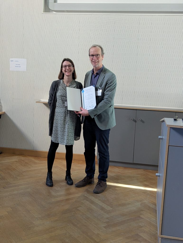 Auf der diesjährigen Jahrestagung der Deutschen Gesellschaft für Public Health wurde erstmalig der von allen fünf Fachgesellschaften im Bereich Public Health ausgeschriebene jährliche „Wissenschaftspreis Klimawandel und Gesundheit“ vergeben. Preisträgerin ist Dr. Claudia Quitmann vom Institut für Global Health am Universitätsklinikum Heidelberg, deren Dissertation „Reducing Hospitals’ Greenhouse Gas Emissions: Status Quo and Future Pathways“ von den Gutachtenden aus den beteiligten Fachgesellschaften als beste Einreichung gewürdigt wurde. Nach einer kurzen Darstellung ihrer Arbeiten durch die Preisträgerin überreichte Prof. Hajo Zeeb, stellv. Vorsitzender der DGPH, den mit 500,- Euro dotierten Preis samt Urkunde an Claudia Quitmann.